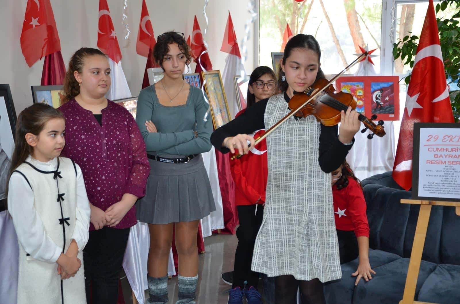 Öğrencilerimizin büyük bir emek ve incelikle hazırladığı müzik dinletisi ve resim sergisi, katılımcılara hem duygu dolu hem de gurur veren anlar yaşattı. Program kapsamında seslendirilen Cumhuriyet temalı eserler, izleyiciler tarafından ilgi ve beğeniyle takip edildi.