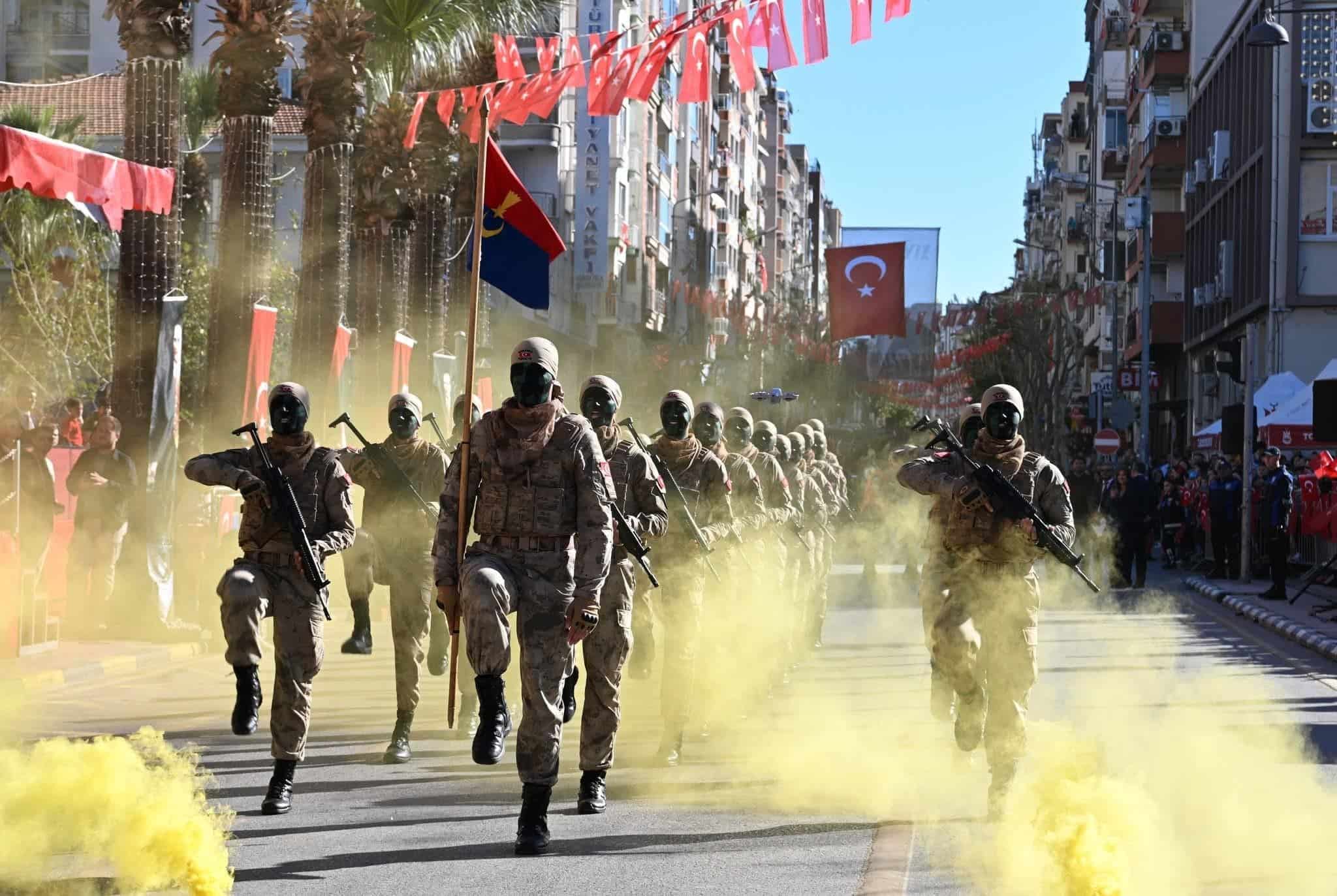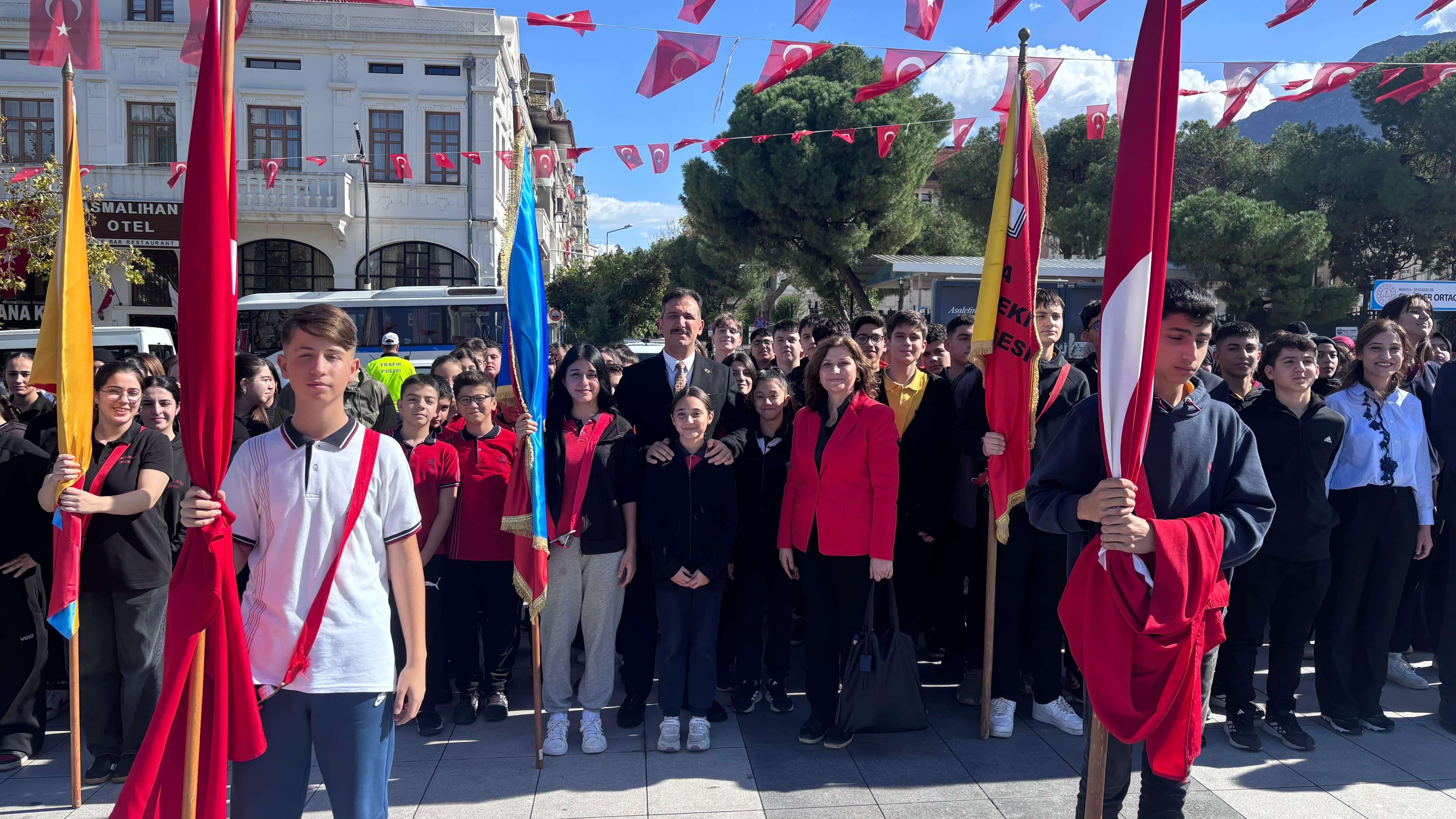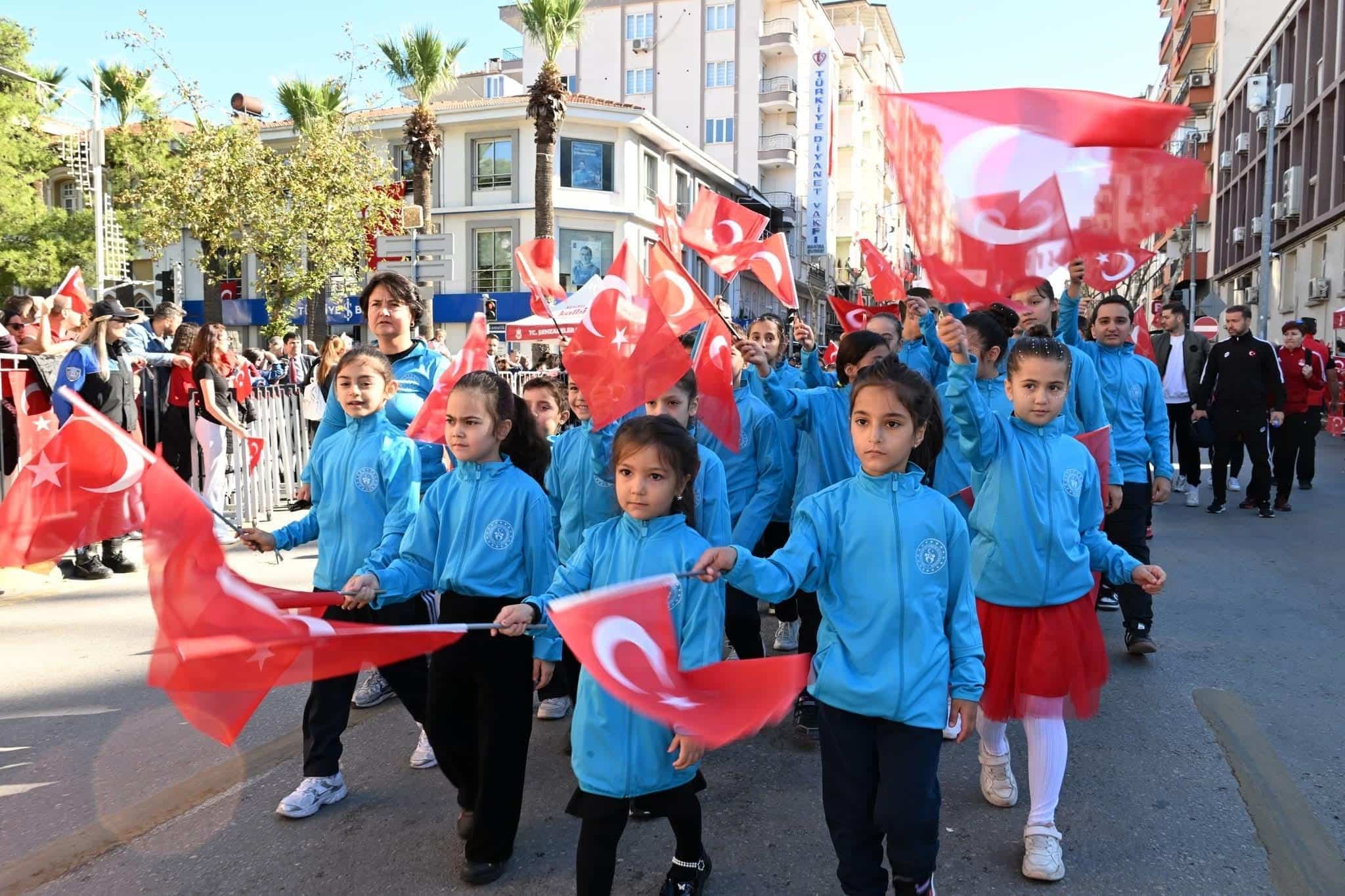 Programın sonunda öğrenciler, öğretmenler, sporcular ve çeşitli kurumların bayraklarla gerçekleştirdikleri geçit töreni Cumhuriyet coşkusunu en güçlü şekilde yaşattı.