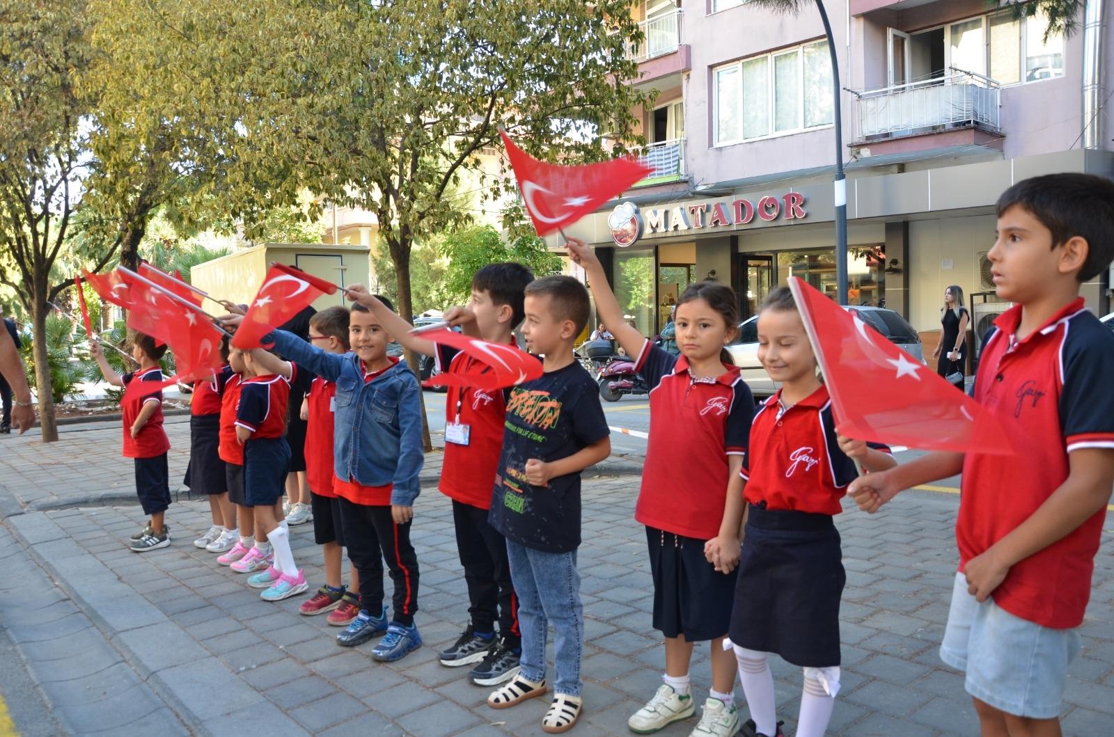 İl Millî Eğitim Müdürümüz Mehmet UĞURELLİ, öğrencilerimiz eşliğinde Atatürk Anıtı'na çelenk sunarak saygı duruşunda bulundu. Ardından İstiklâl Marşımızın hep bir ağızdan söylenmesiyle meydandaki tören tamamlandı.