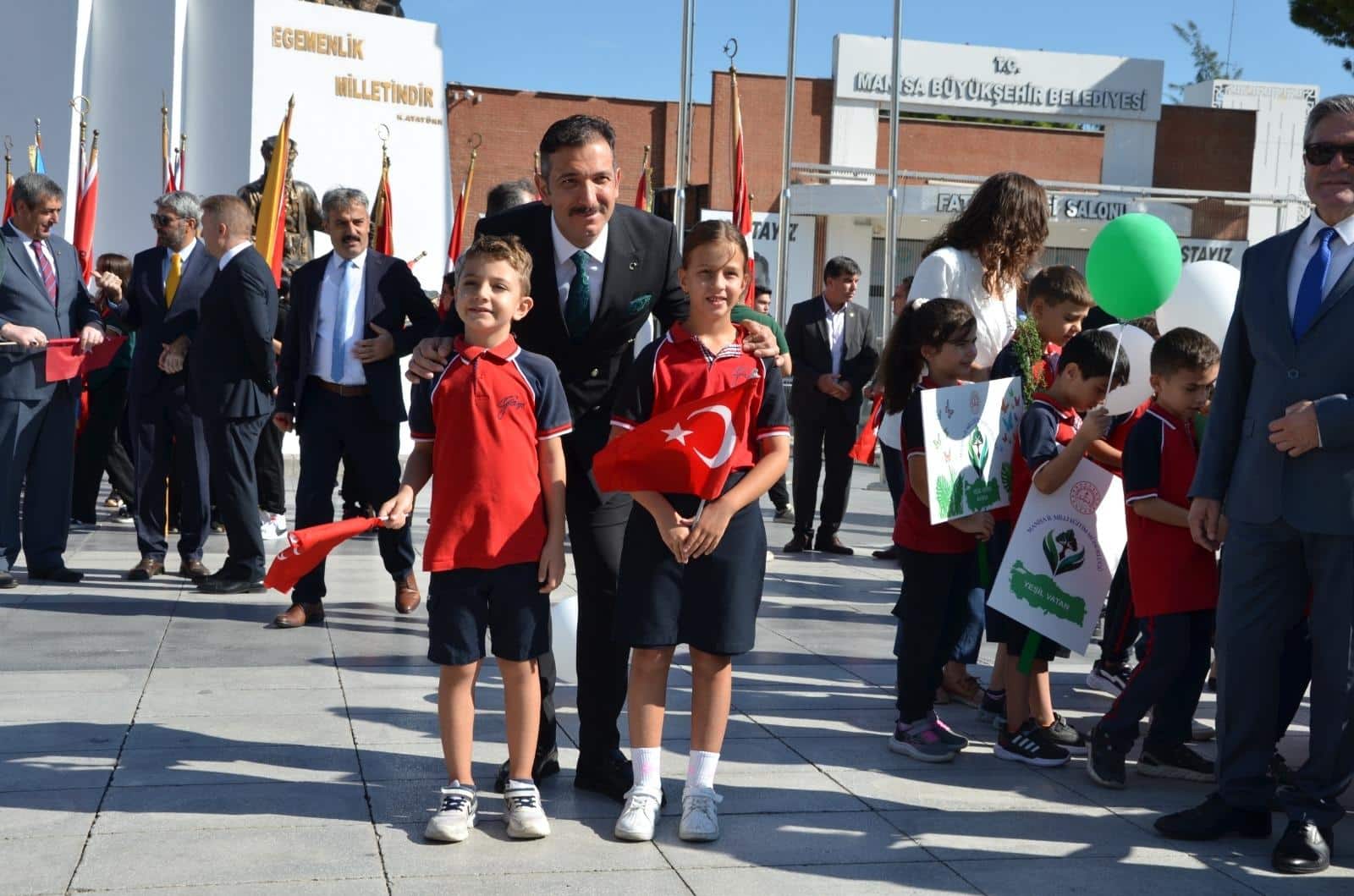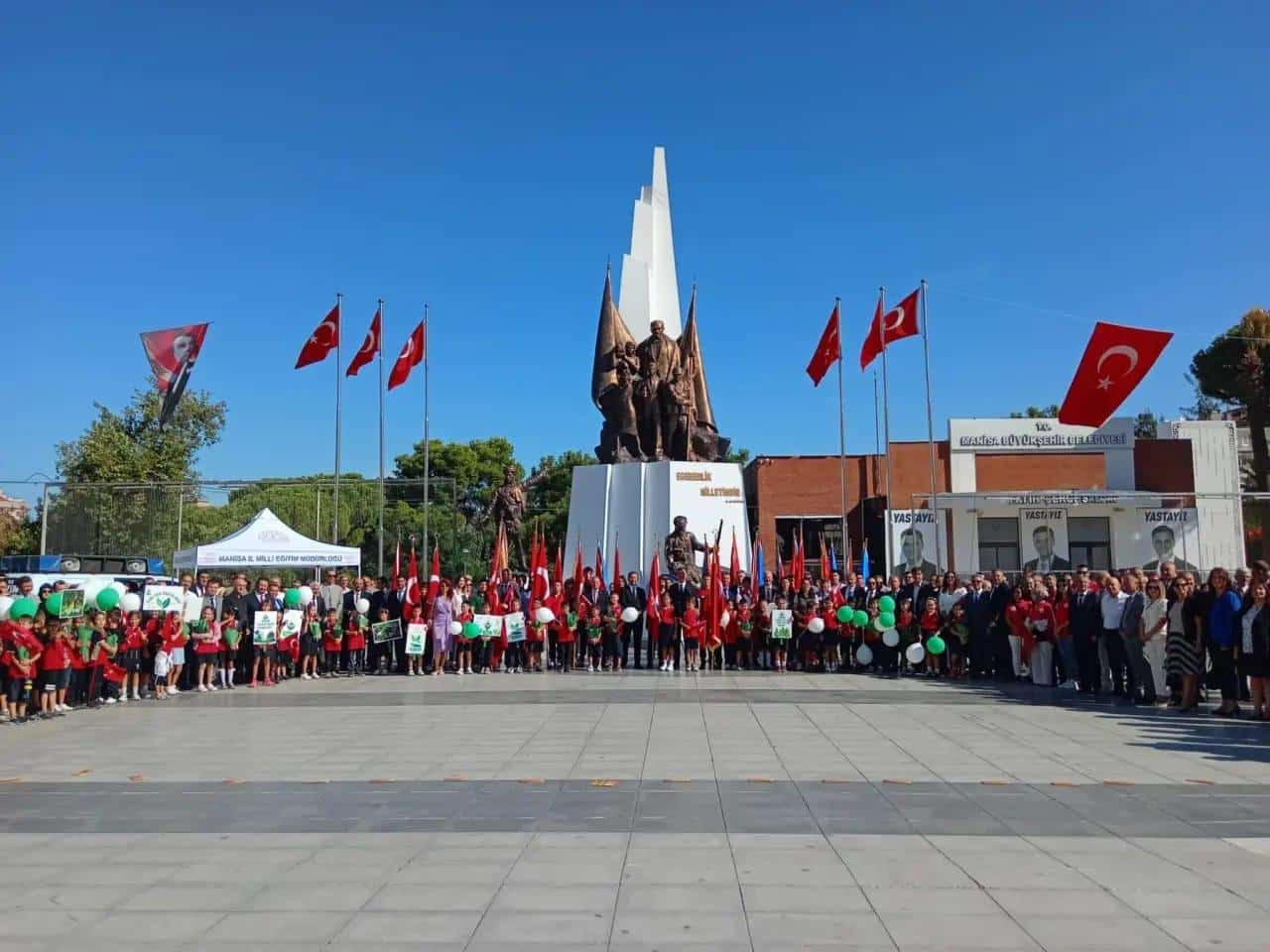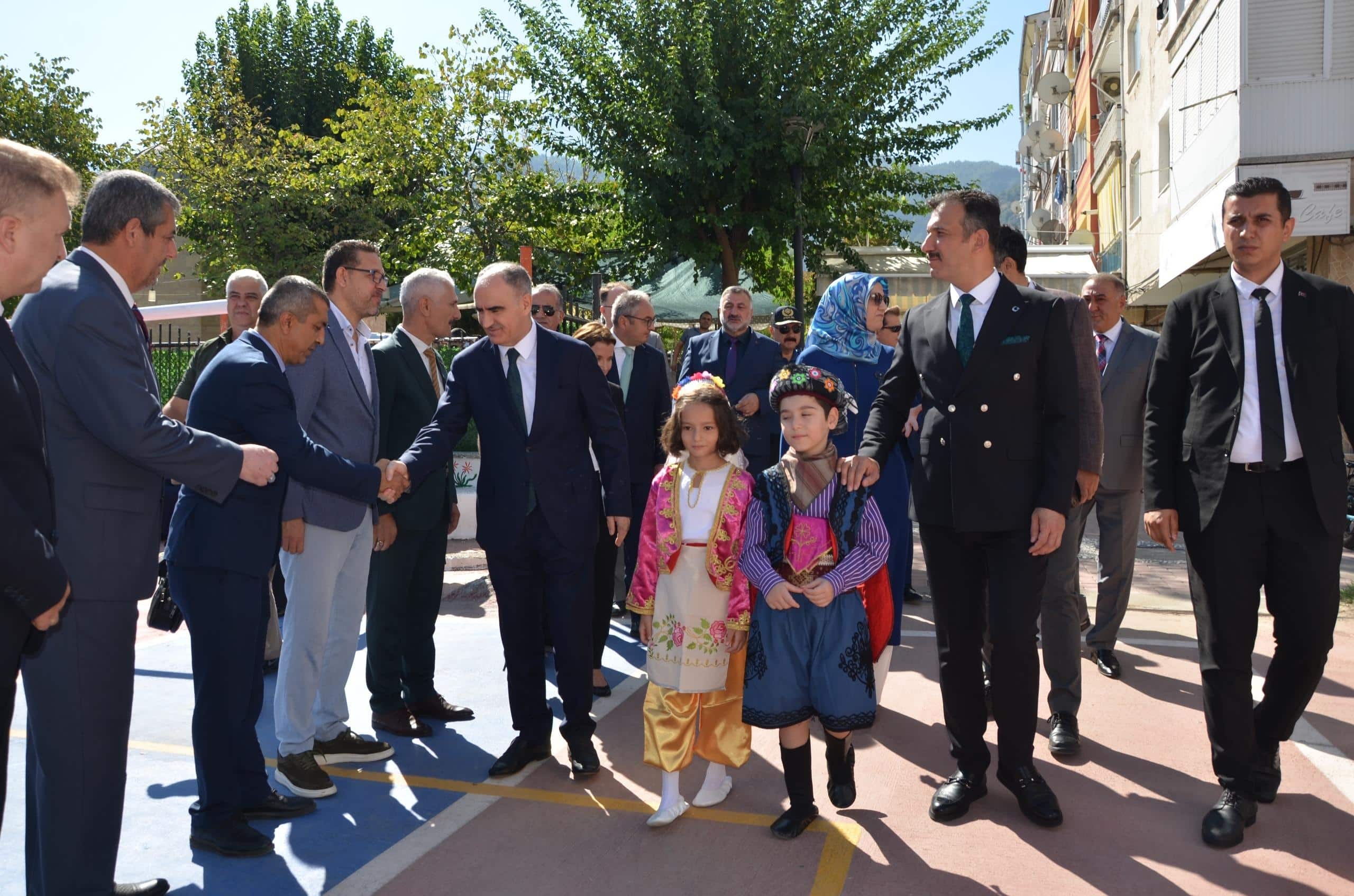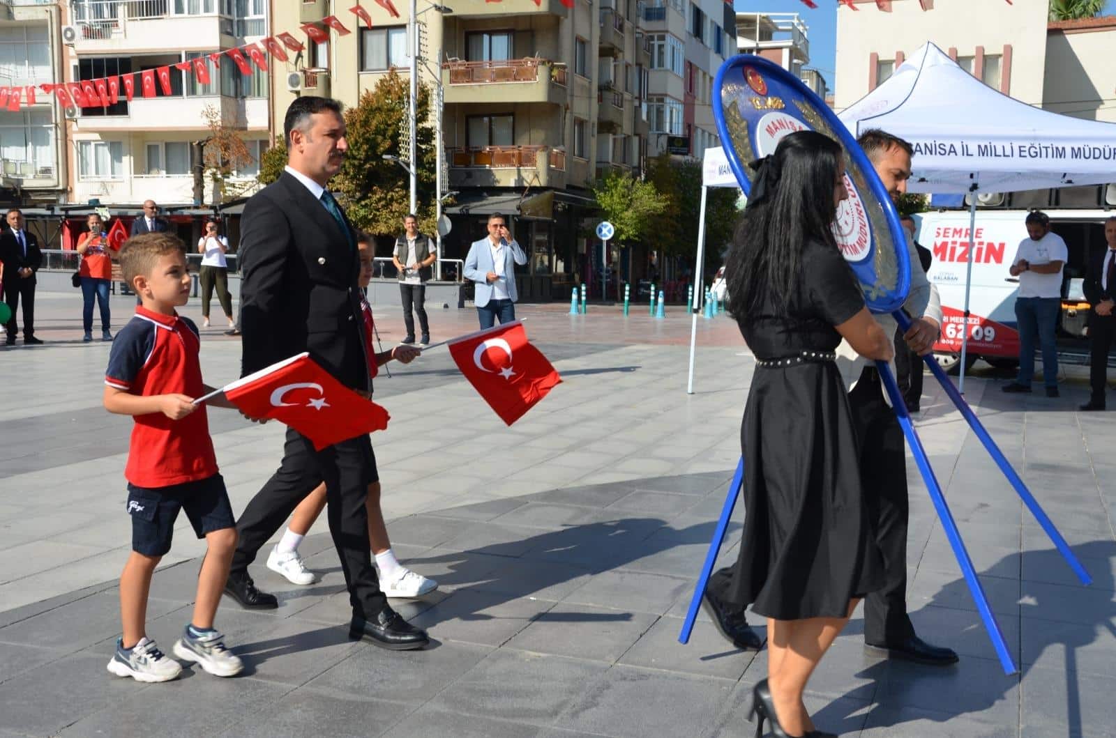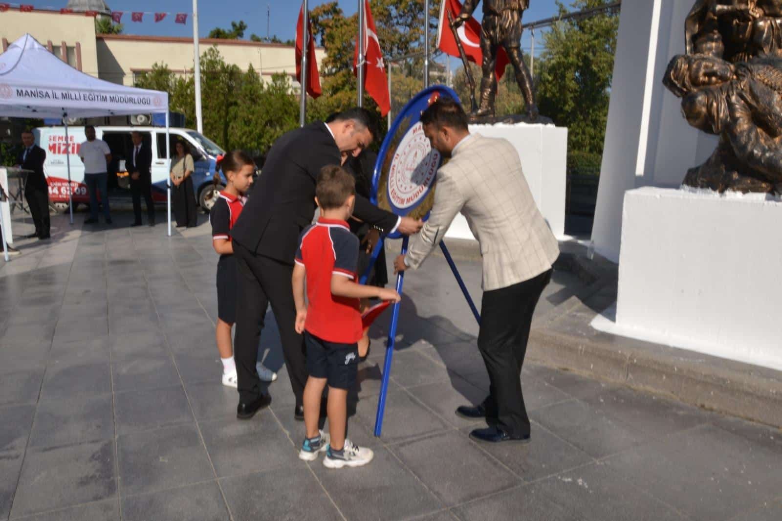 Çelenk sunma töreninin ardından kutlama programı Valimiz Sayın Vahdettin ÖZKAN, İl Millî Eğitim Müdürümüz Mehmet UĞURELLİ, il protokolü, öğretmenlerimiz, öğrencilerimiz ve velilerimizin katılımıyla Yunusemre Halil Yurtseven İlkokulunda devam etti.